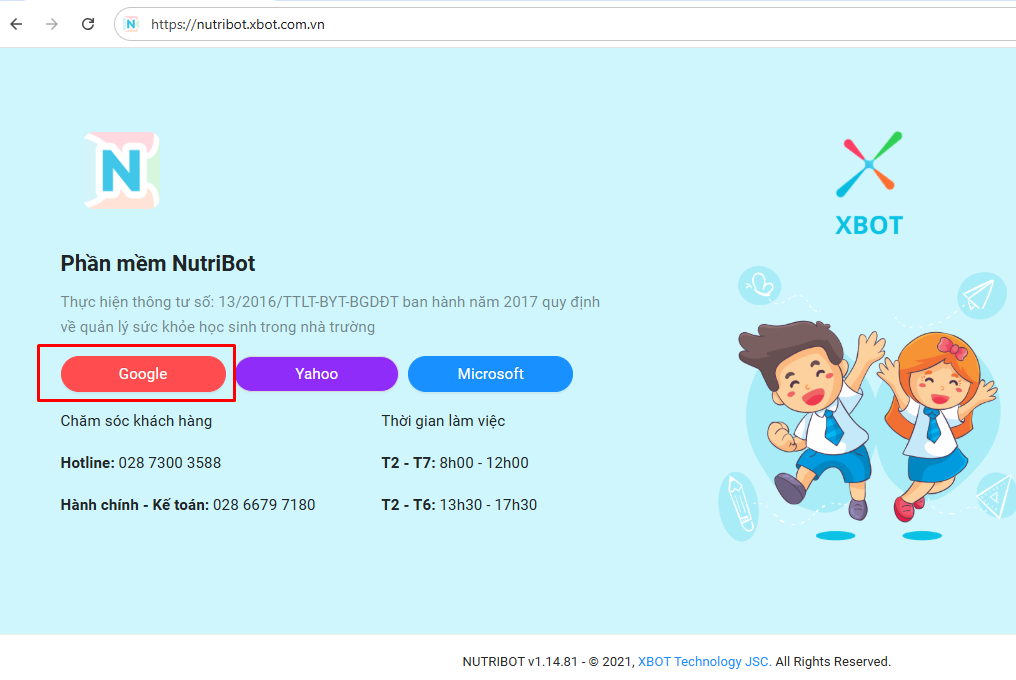 Bước 1: Truy cập vào phần mềm theo địa chỉ: https://nutribot.xbot.com.vn