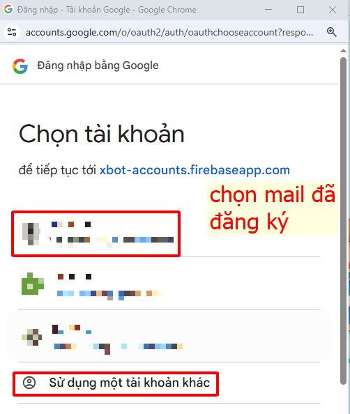 Bước 3: Thầy/cô chọn mail đăng ký với công ty để vào phần mềm. Trường hợp không thấy mail đăng ký thì bấm nút “Sử dụng một tài khoản khác” để nhập địa chỉ mail