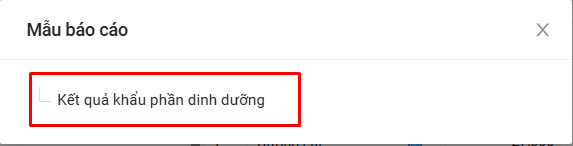 Bước 2: Chọn mẫu in Kết quả khẩu phần dinh dưỡng