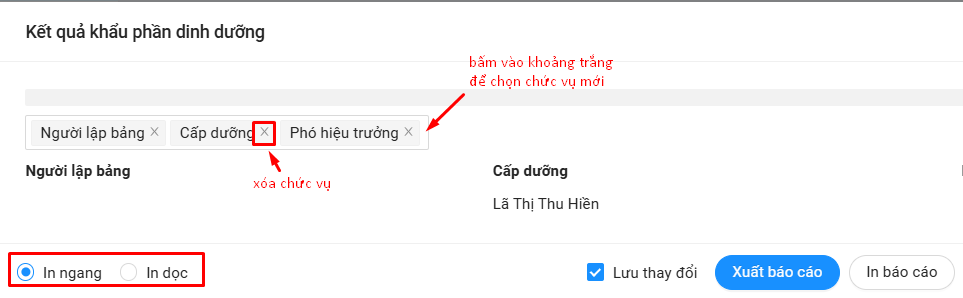 - Chọn chức vụ ký trong mẫu báo cáo: