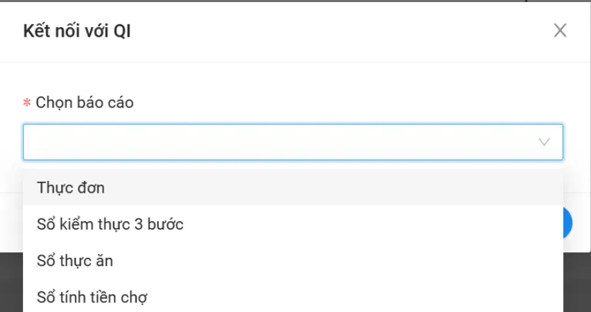 Sau khi chọn báo cáo sở thì bấm vào biểu tượng “QI” sau đó chọn báo cáo cần đồng bộ