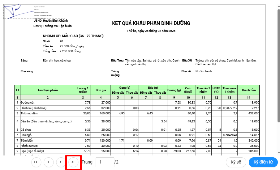 Bước 4: Bấm vào mũi tên để đi đến trang cuối, ở đó có chức vụ để ký
