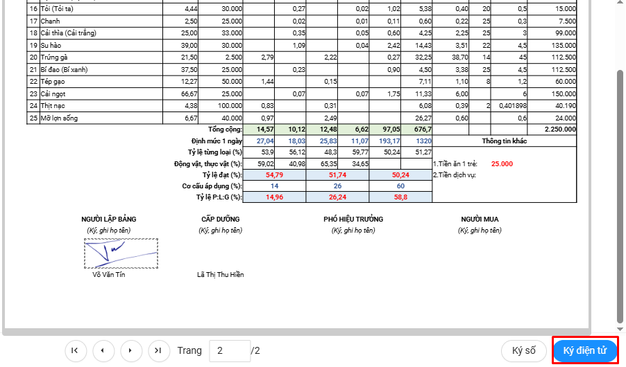 Bước 5: Bấm nút Ký điện tử. Trường hợp Cô có USB Token và muốn ký số thì bấm vào nút Ký số