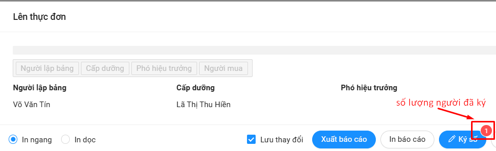 - Phần mềm sẽ hiển thị thông báo có bao nhiêu người đã ký ở báo cáo này