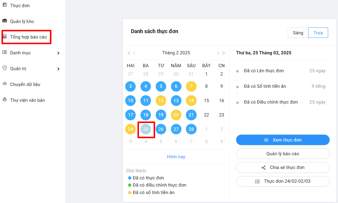 Bước 1: Cô chọn ngày cần ký sau đó bấm vào nút Tổng hợp báo cáo