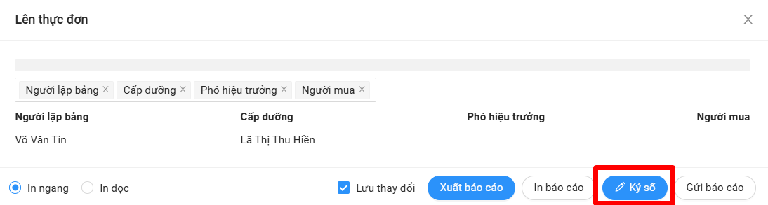 Các báo cáo khác thầy/cô cũng ký với thao tác tương tự