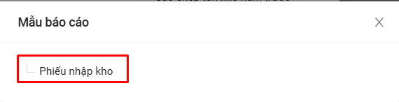 Bước 2: Chọn mẫu Phiếu nhập kho