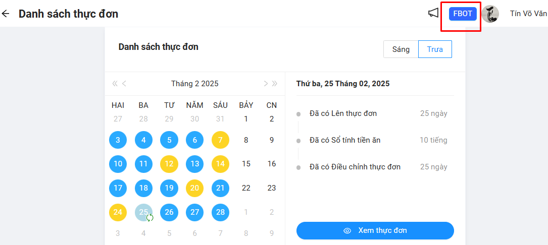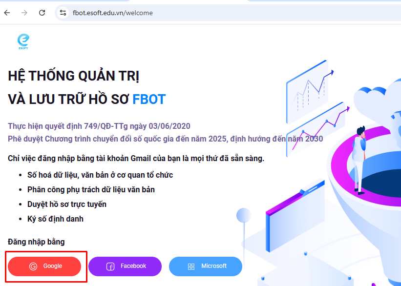 Bước 1: Cô truy cập vào tủ hồ sơ điện tử của trường tại địa chỉ: https://fbot.esoft.edu.vn hoặc giao diện phần mềm Nutribot Cô bấm vào nút FBOT ở góc phải bên trên để truy cập nhanh vào tủ hồ sơ điện tử