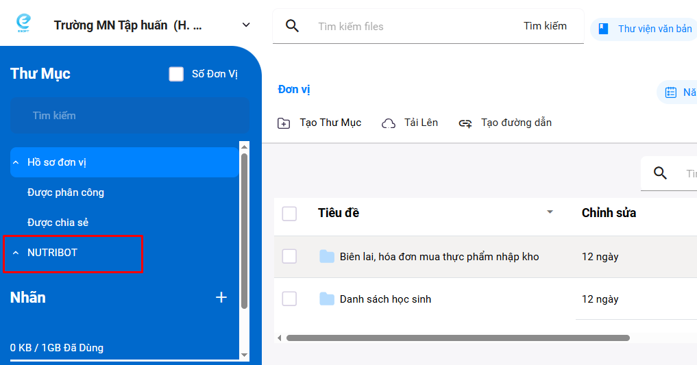 Bước 3: Bấm vào thư mục có tên NUTRIBOT để xem các báo cáo đã ký