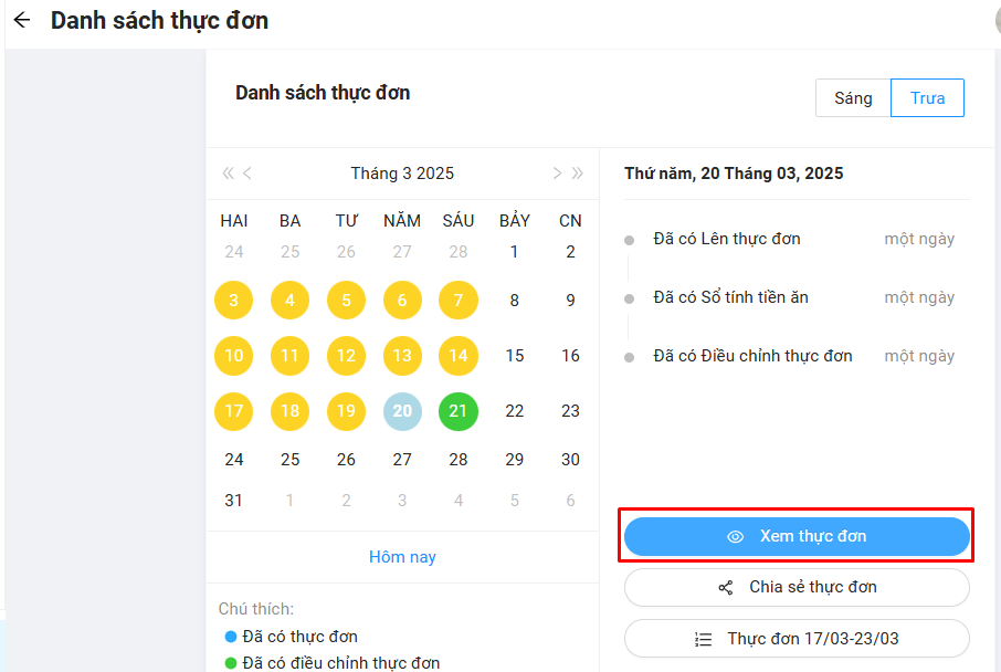 Bước 2: Bấm vào nút Xem thực đơn