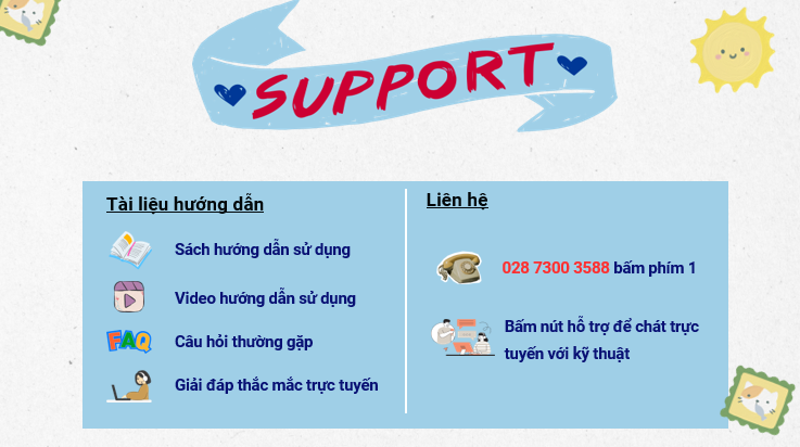 Trong trường hợp Thầy/Cô cần trao đổi trực tiếp, đừng ngần ngại nhấc máy và gọi đến số hotline 028 7300 3588 (bấm phím 1) để gặp ngay bộ phận Chăm sóc Khách hàng thân thiện - nhiệt tâm!